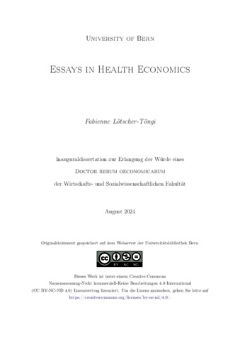Lötscher-Töngi, Fabienne (2024). Essays in Health Economics. (Thesis). Universität Bern, Bern