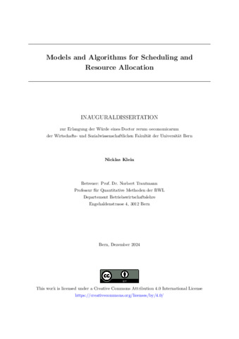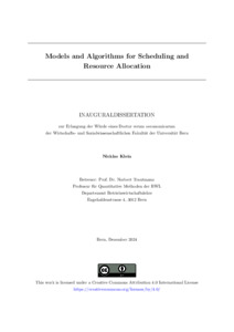 Klein, Nicklas (2025). Models and Algorithms for Scheduling and Resource Allocation. (Thesis). Universität Bern, Bern
