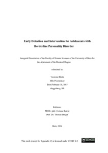 Blaha, Yasmine (2024). Early Detection and Intervention for Adolescents with Borderline Personality Disorder. (Thesis). Universität Bern, Bern