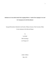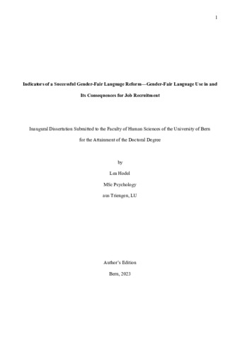 Hodel, Lea (2023). Indicators of a Successful Gender-Fair Language Reform — Gender-Fair Language Use in and Its Consequences for Job Recruitment. (Thesis). Universität Bern, Bern