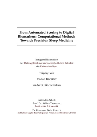 Bechný, Michal (2025). From Automated Scoring to Digital Biomarkers: Computational Methods Towards Precision Sleep Medicine. (Thesis). Universität Bern, Bern