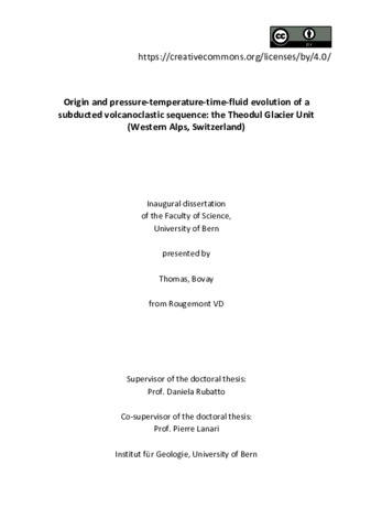 Bovay, Thomas (2021). Origin and pressure-temperature-time-fluid evolution of a subducted volcanoclastic sequence: the Theodul Glacier Unit (Western Alps, Switzerland). (Thesis). Universität Bern, Bern