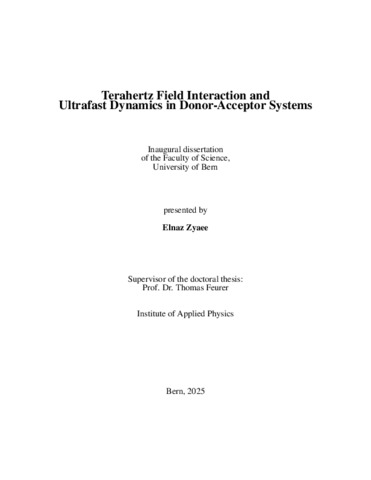Zyaee, Elnaz (2025). Terahertz Field Interaction and Ultrafast Dynamics in Donor-Acceptor Systems. (Thesis). Universität Bern, Bern