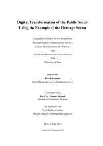 Estermann, Beat (2024). Digital Transformation of the Public Sector Using the Example of the Heritage Sector. (Thesis). Universität Bern, Bern